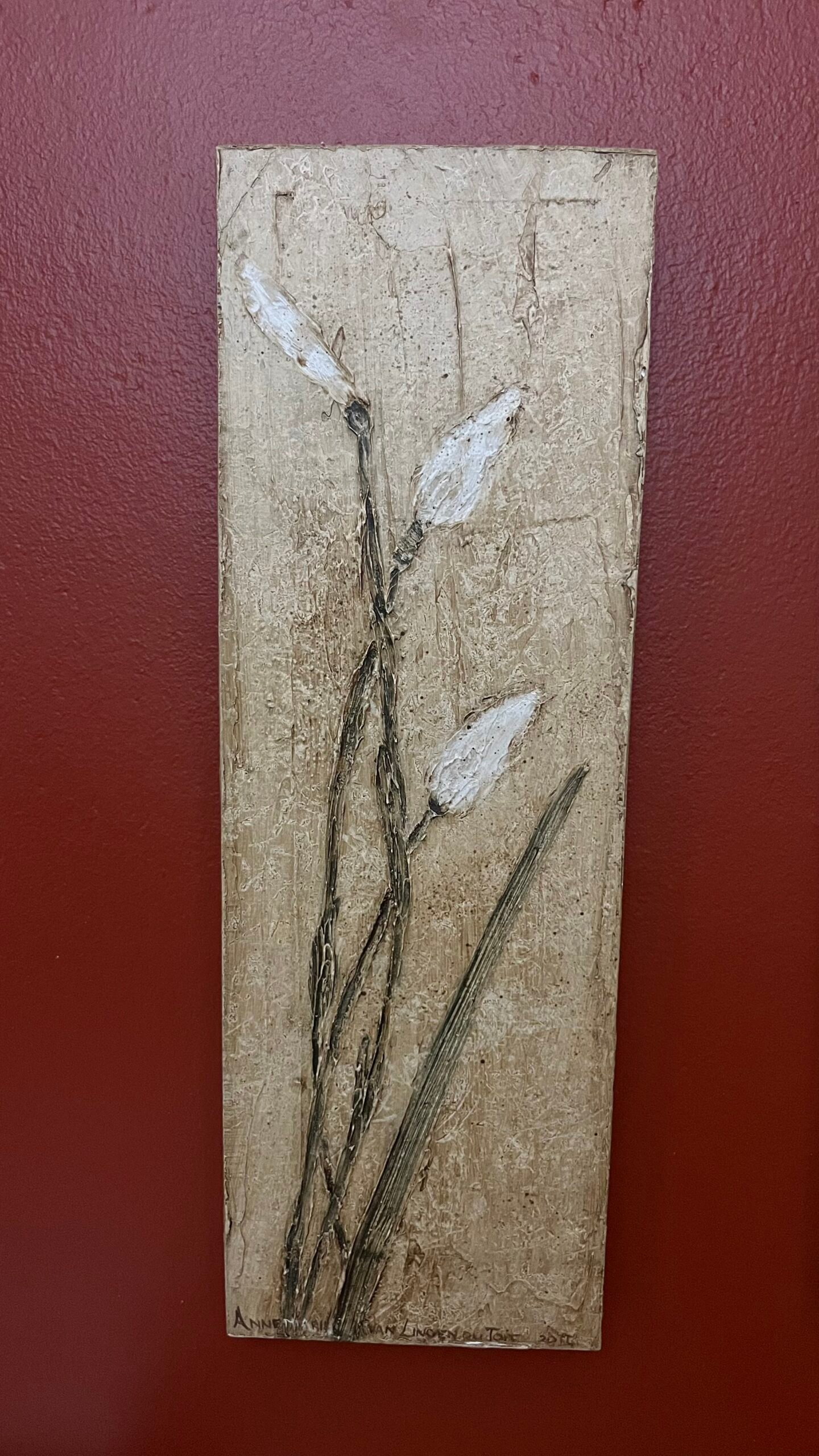 Transform your walls with this wooden wall hanging. The bold mixed medium paint finish showcases artistic versatility achieved with a palette knife technique. Measuring 42 x 14 cm and 2.5 cm thick, the wall hanging is a perfect blend of form and function. Its neutral colours make it an adaptable choice for various decor designs.